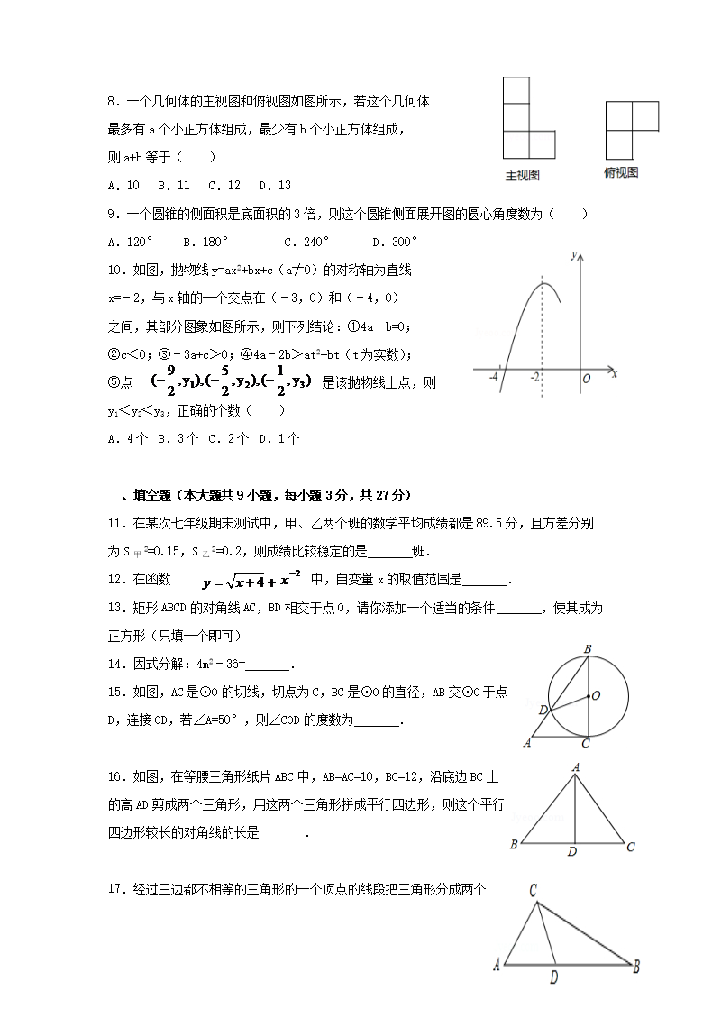 【文档名称】 2017年黑龙江大兴安岭中考数学真题及答案(Word版).doc