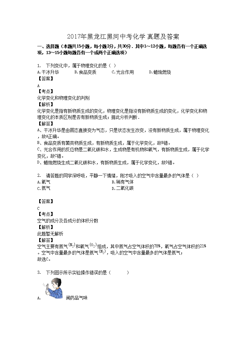 【文档预览】 无忧考网整理发布2017年黑龙江黑河中考化学真题及答案(Word版),前五页预览如下: