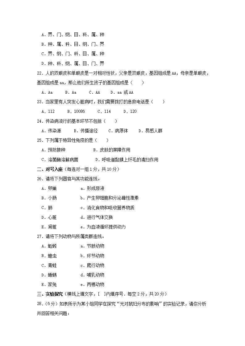 【文档名称】 2017年黑龙江黑河中考生物真题及答案(Word版).doc