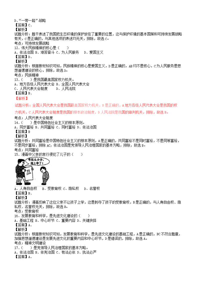【文档预览】 无忧考网整理发布2017年黑龙江黑河中考政治真题及答案(Word版),前五页预览如下: