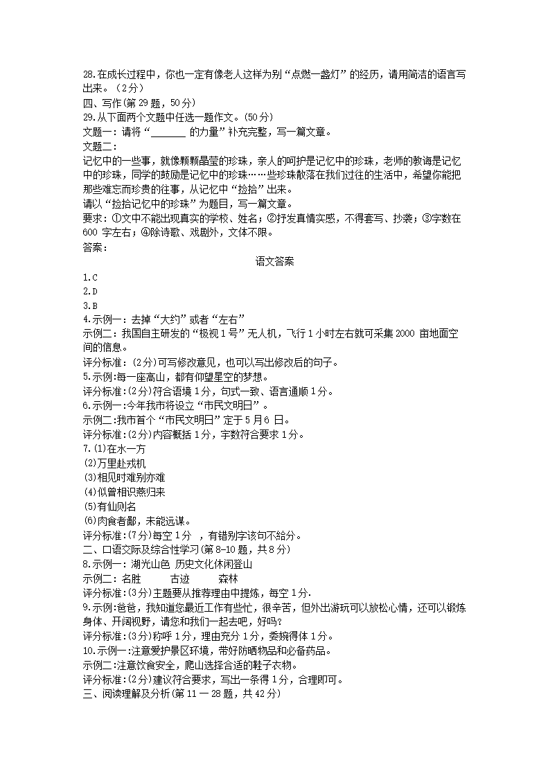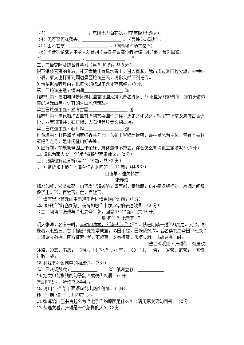 【文档名称】 2017年黑龙江牡丹江市中考语文真题及答案(Word版).doc