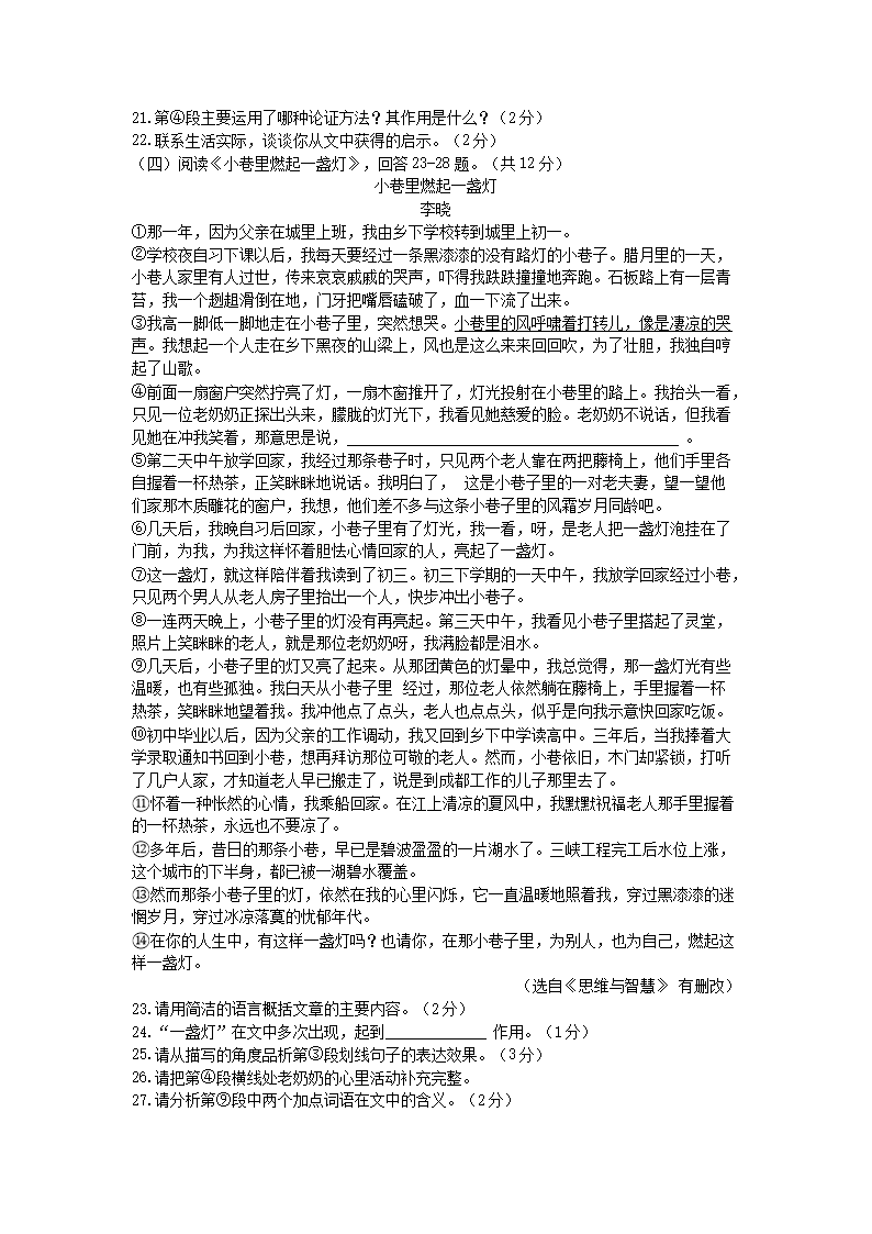 【文档预览】 无忧考网整理发布2017年黑龙江牡丹江市中考语文真题及答案(Word版),前五页预览如下: