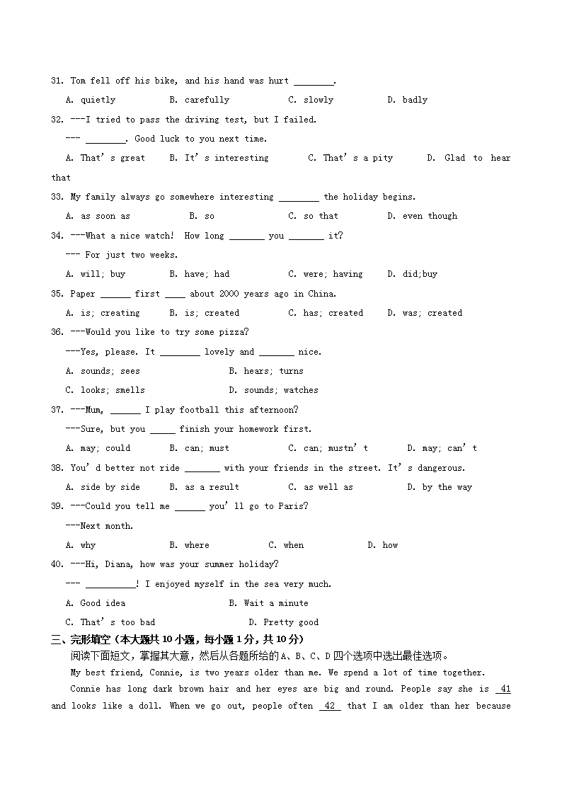 【文档名称】 2016天津汉沽中考英语真题及答案(Word版).doc