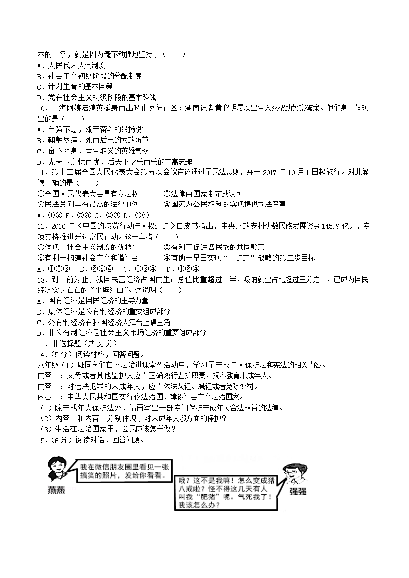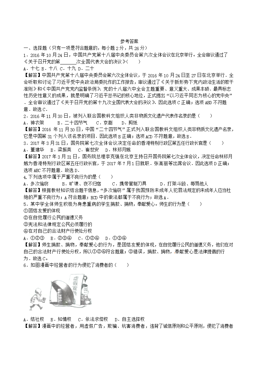 【文档名称】 2017年吉林白城中考政治真题及答案(Word版).doc