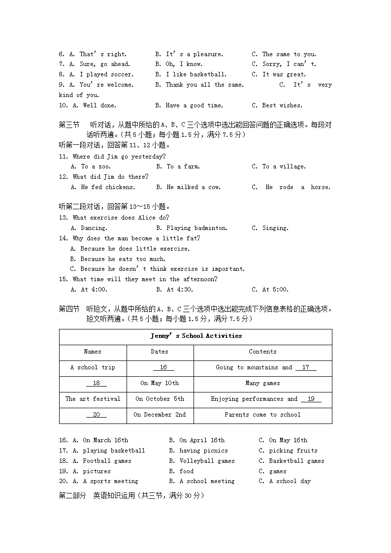 【文档预览】 无忧考网整理发布2015年云南楚雄中考英语真题及答案(Word版),前五页预览如下: