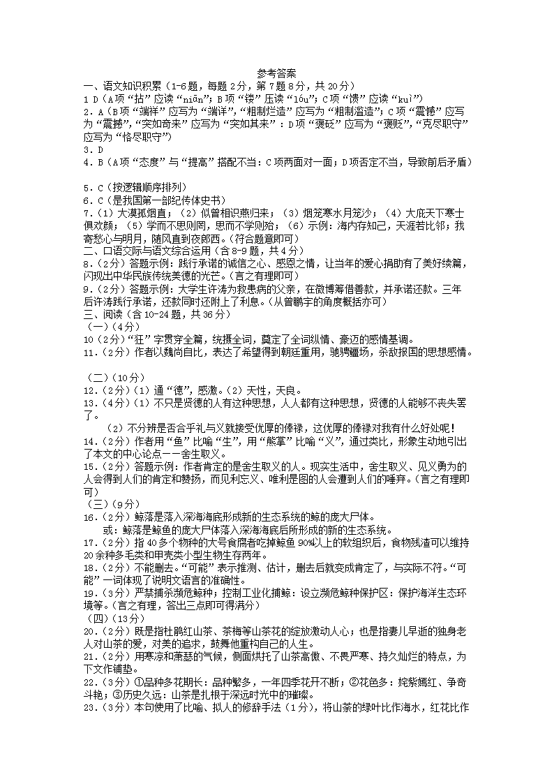 【文档名称】 2015年云南大理中考语文真题及答案(Word版).doc