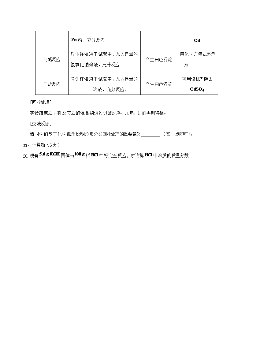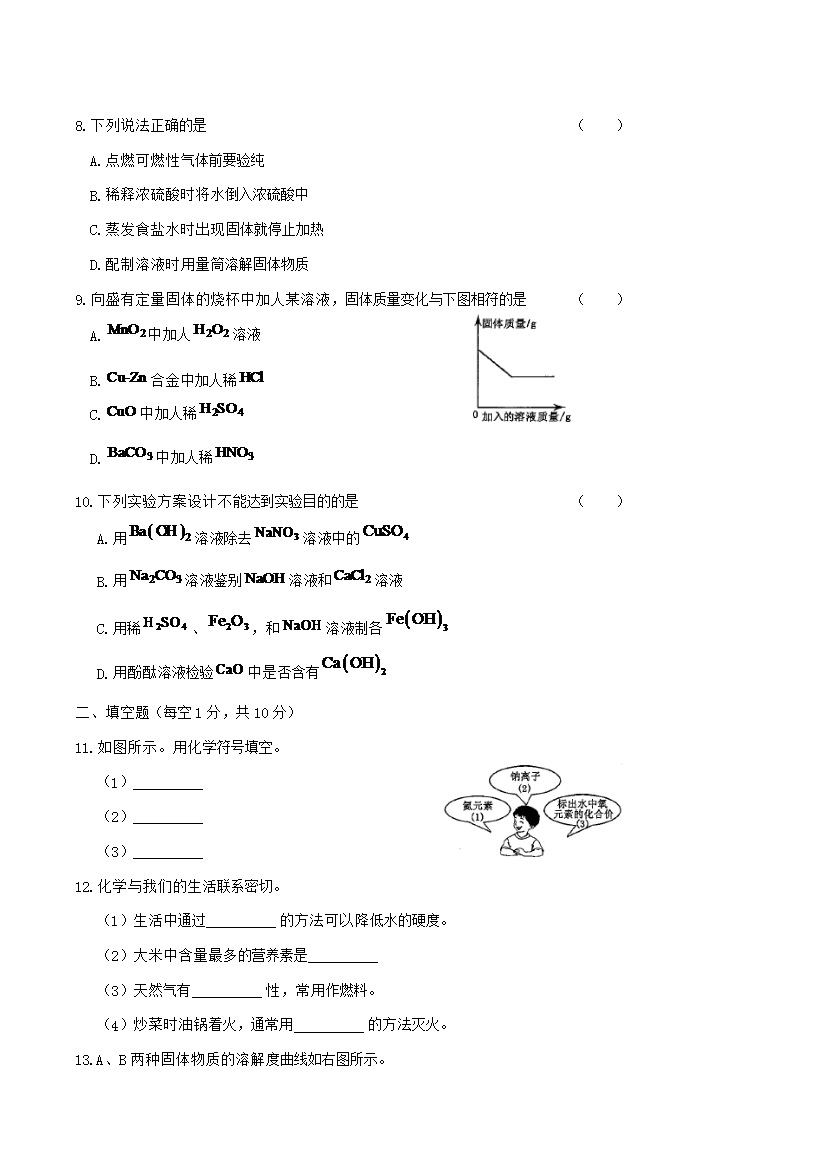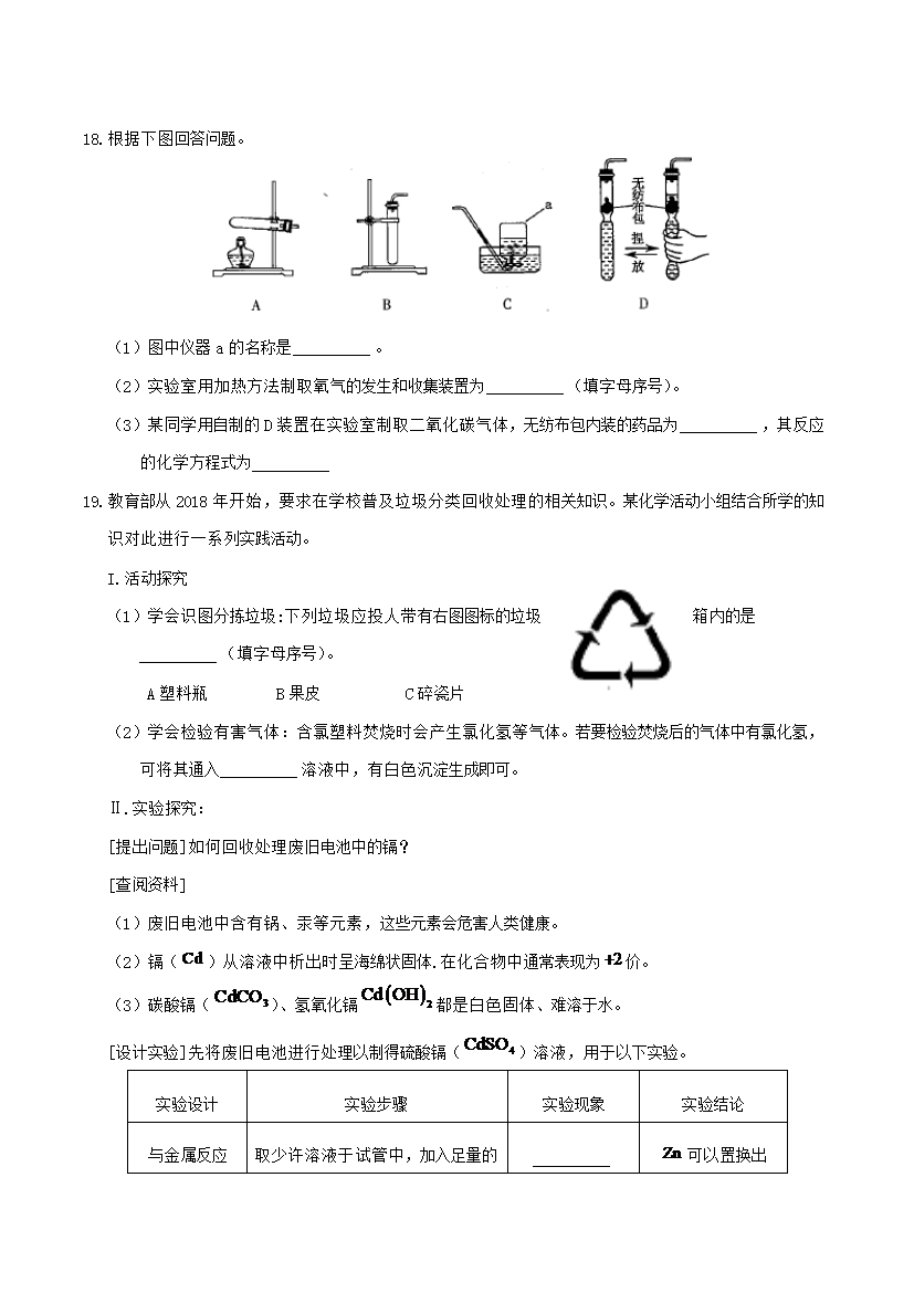 【文档名称】 2019年吉林白城中考化学真题及答案(Word版).doc