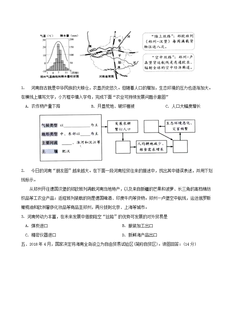 【文档预览】 无忧考网整理发布2019年上海青浦中考地理真题及答案(Word版),前五页预览如下: