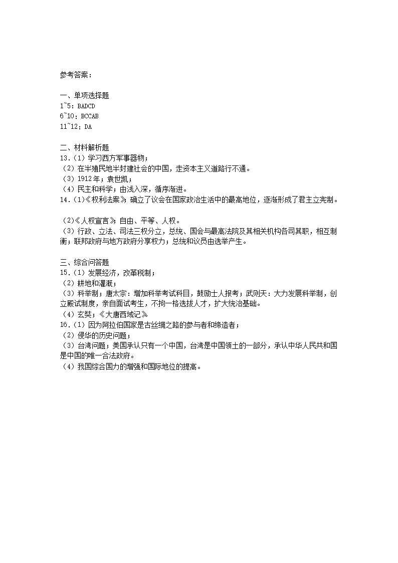 【文档名称】 2019年青海省果洛中考历史真题及答案(Word版).doc