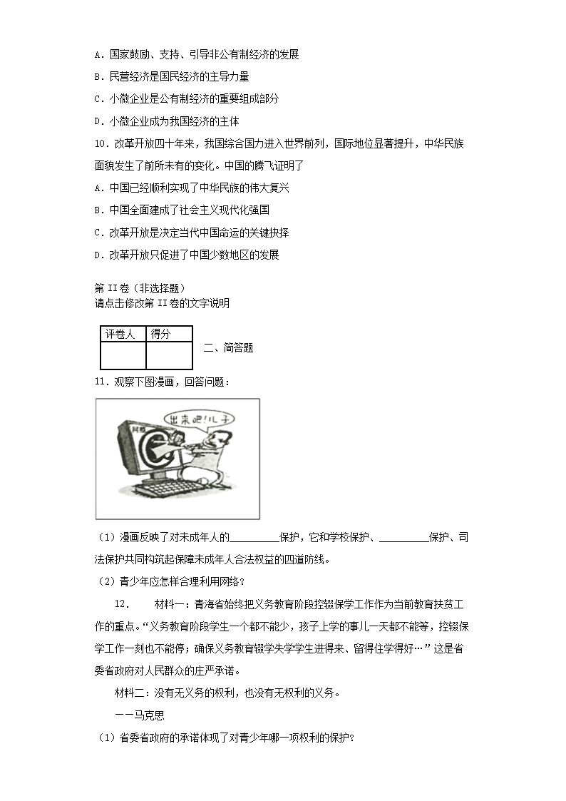 【文档名称】 2019年青海省中考政治真题及答案(Word版).doc