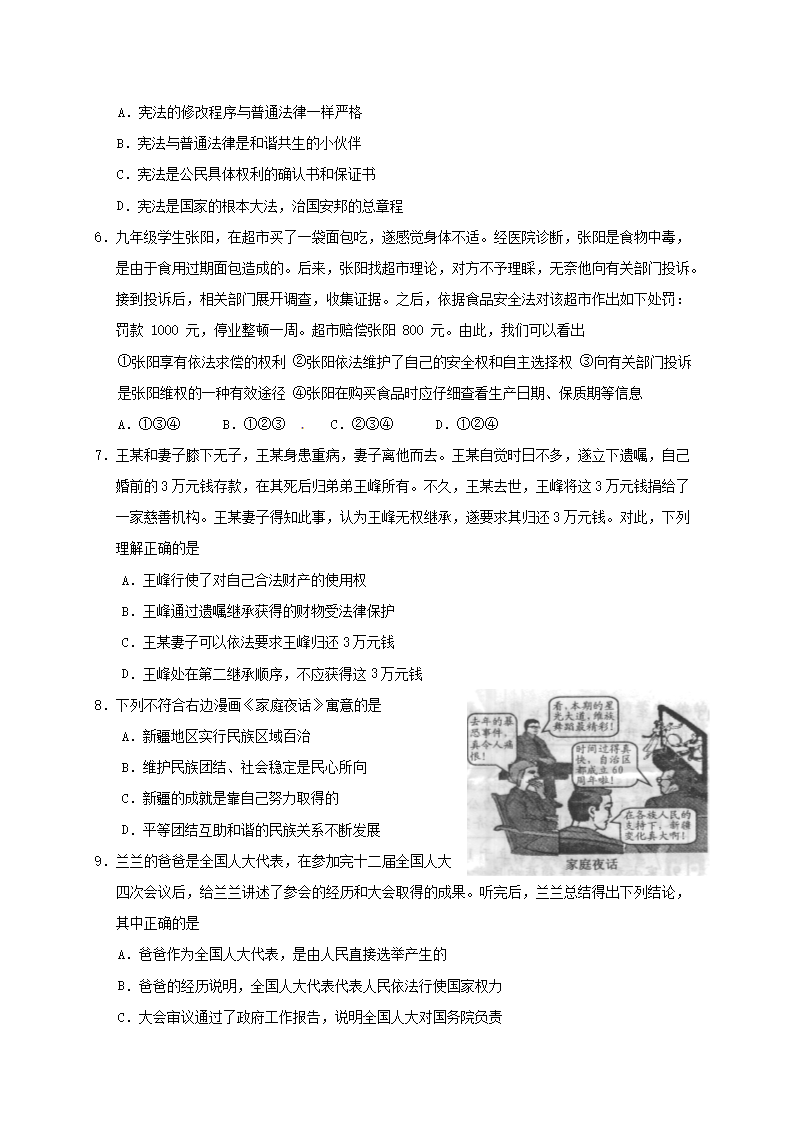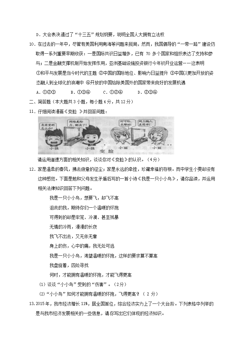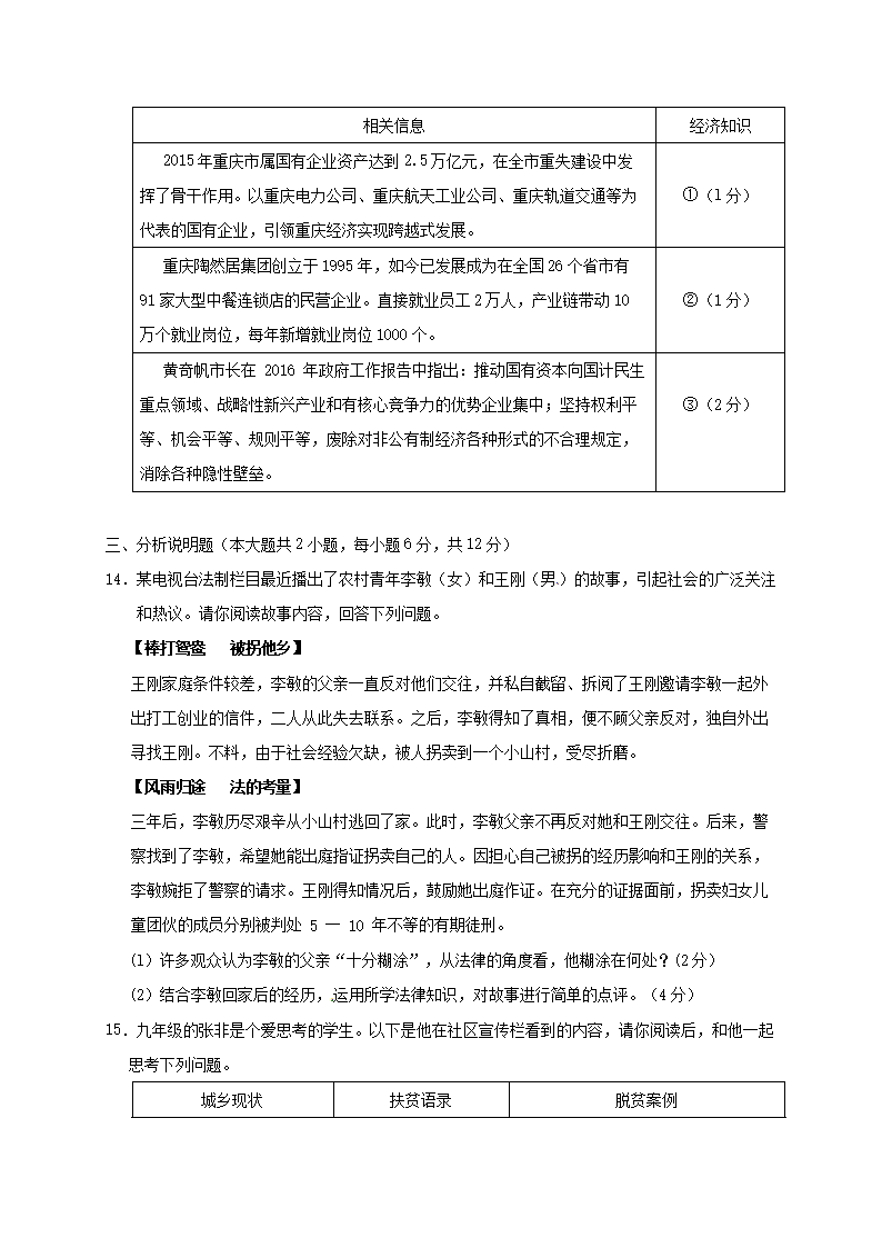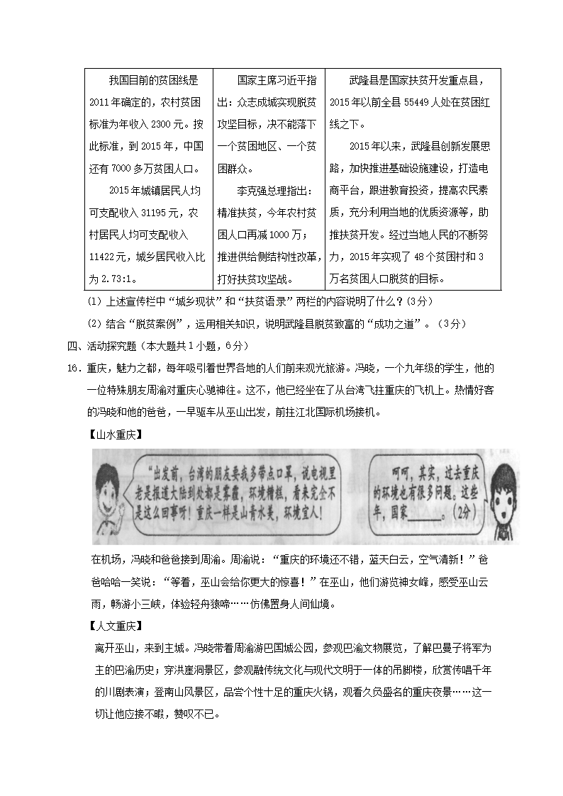 【文档名称】 2016年重庆江津中考道德与法治真题及答案B卷(Word版).doc