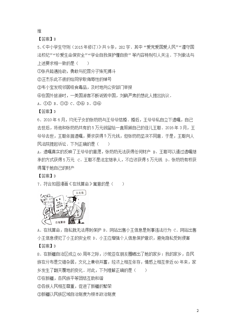【文档名称】 2016年重庆江津中考道德与法治真题及答案A卷(Word版).doc