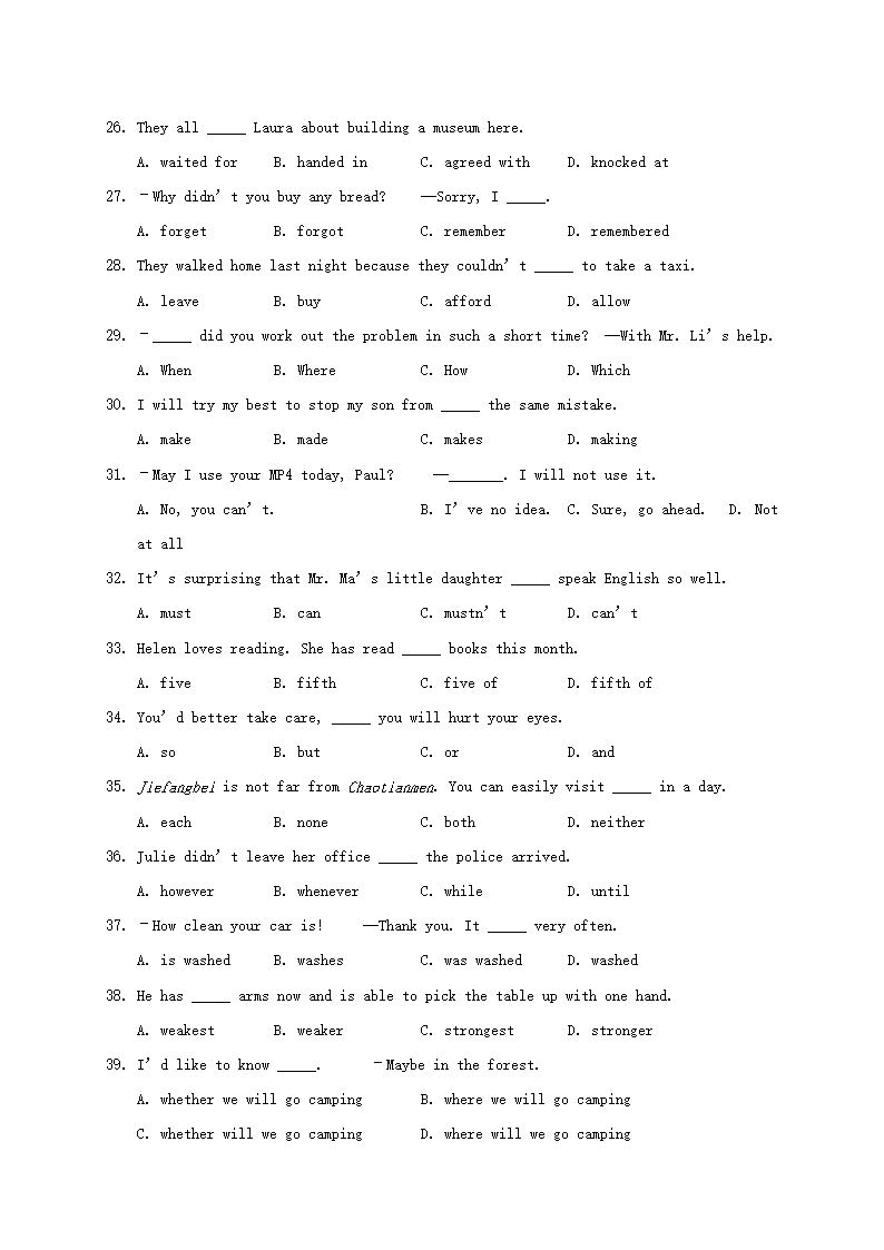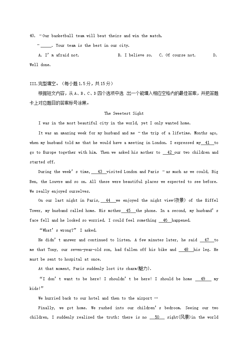 【文档名称】 2015年重庆江津中考英语真题及答案A卷(Word版).doc