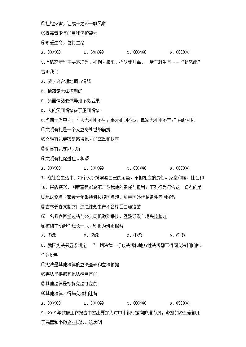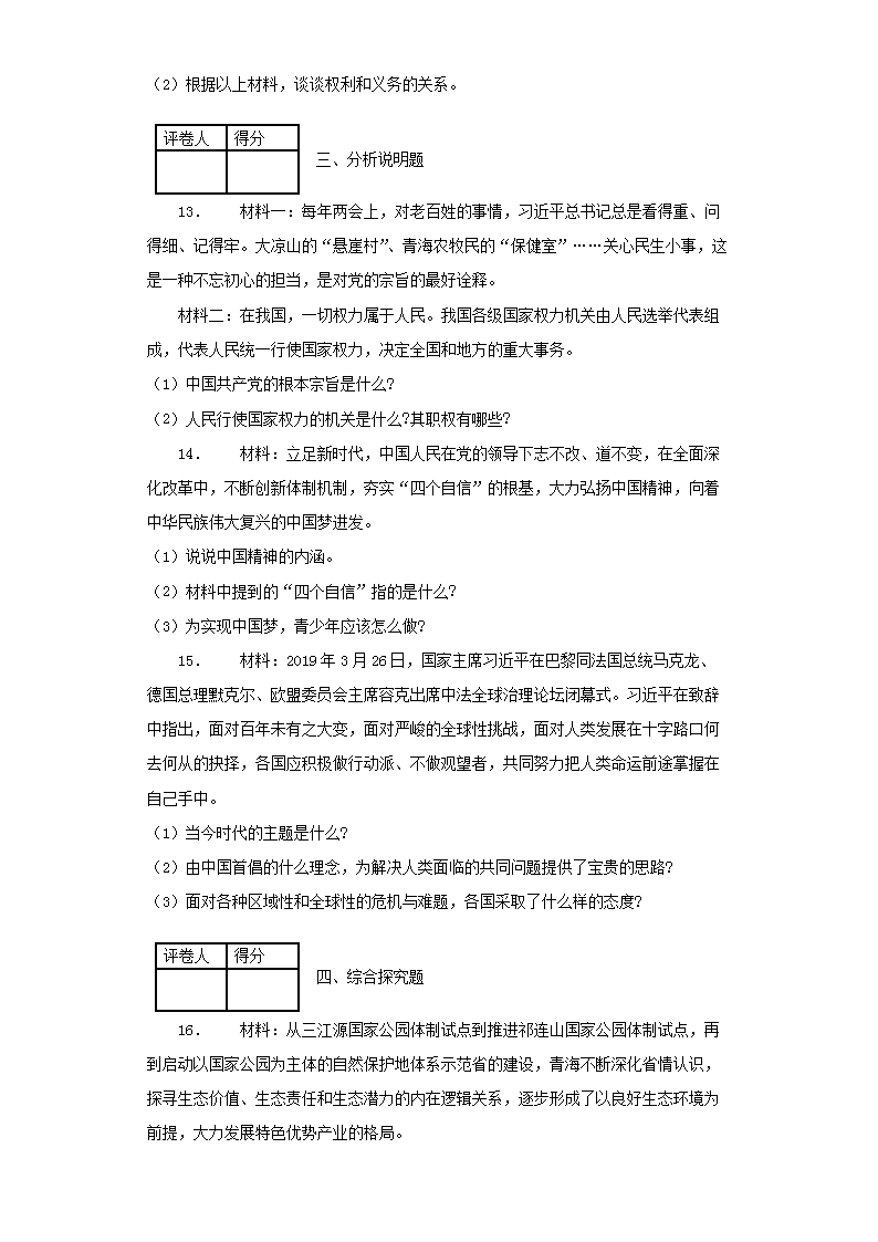 【文档名称】 2019年青海省海北中考政治真题及答案(Word版).doc