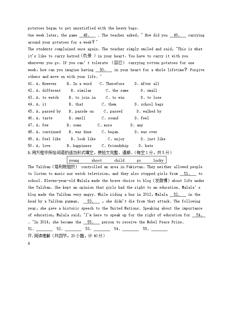 【文档预览】 无忧考网整理发布2019年青海省海东中考英语真题及答案(Word版),前五页预览如下:
