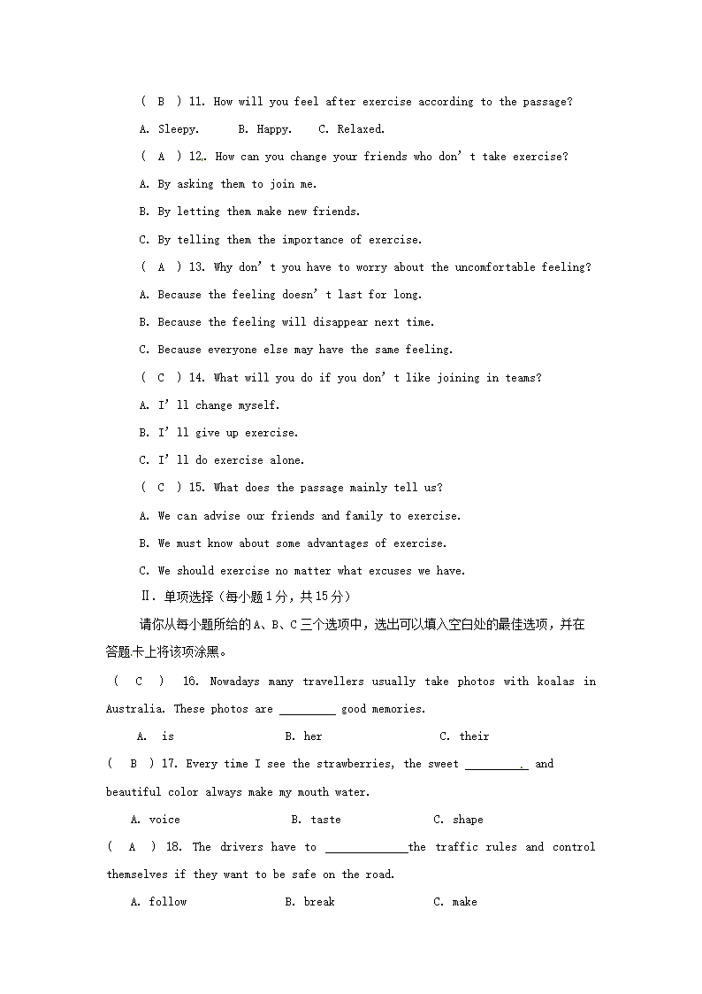 【文档预览】 无忧考网整理发布2015年山西晋中中考英语真题及答案(Word版),前五页预览如下: