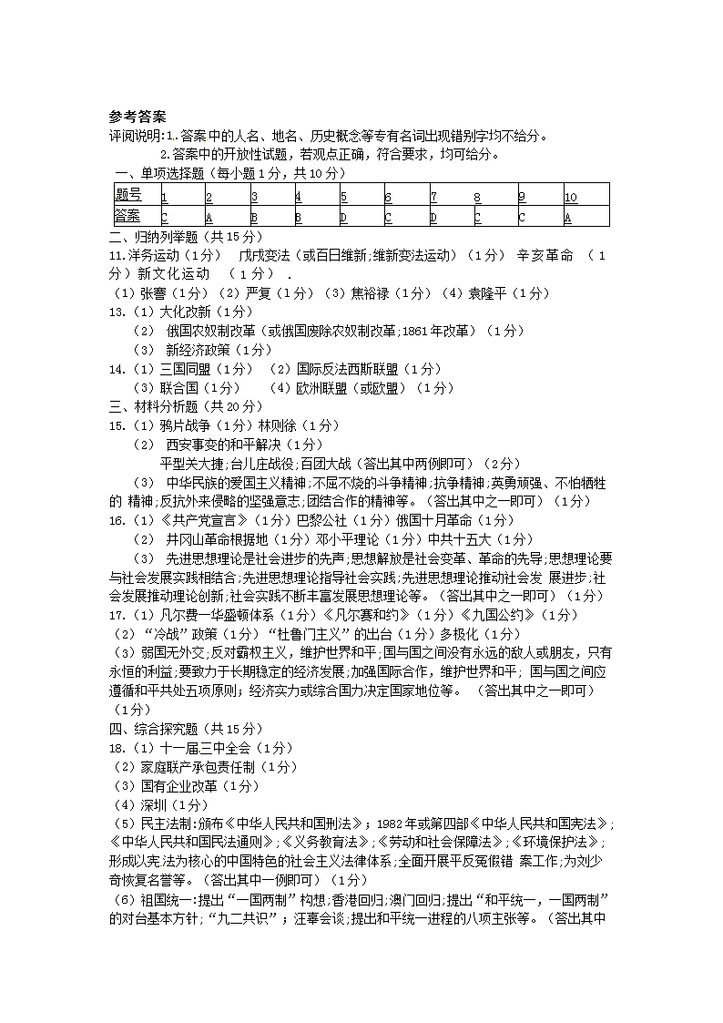 【文档名称】 2018年吉林松原中考历史真题及答案(Word版).doc