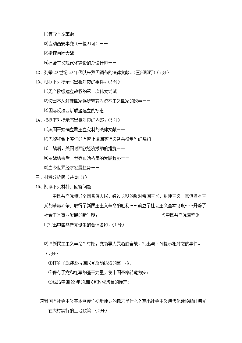 【文档名称】 2016年吉林吉林市中考历史真题及答案(Word版).doc