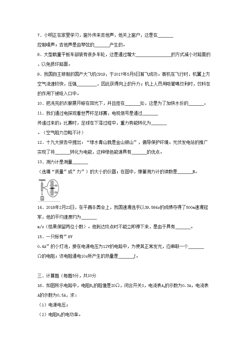 【文档名称】 2018年吉林松原中考物理真题及答案(Word版).doc