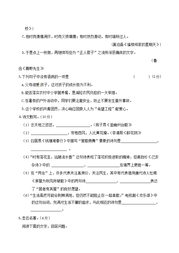 【文档预览】 无忧考网整理发布2017年黑龙江鸡西中考语文真题及答案(Word版),前五页预览如下: