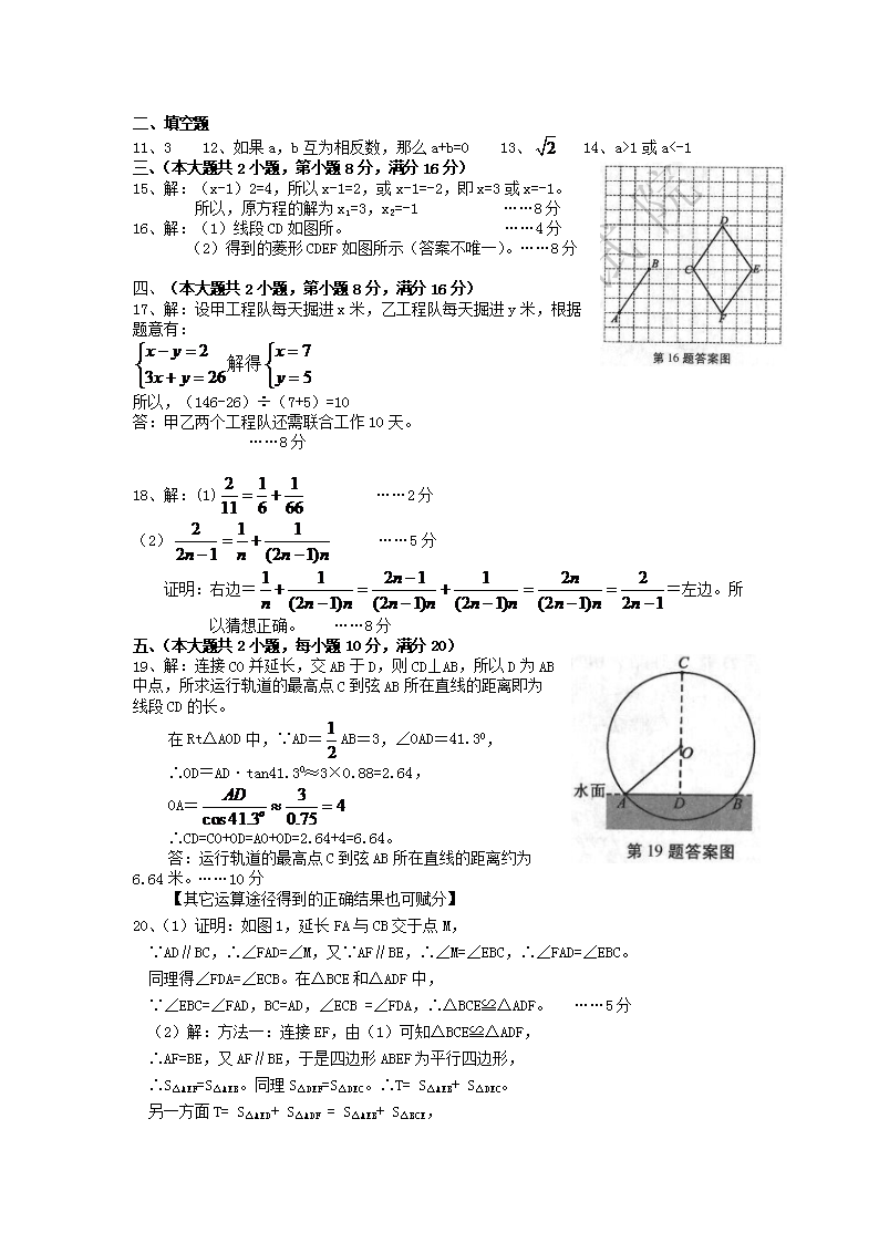 【文档预览】 无忧考网整理发布2019年安徽中考数学真题及答案(Word版),前五页预览如下: