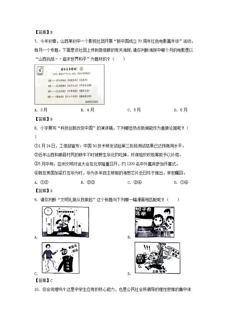 【文档预览】 无忧考网整理发布2019年山西长治中考道德与法治真题及答案(Word版),前五页预览如下: