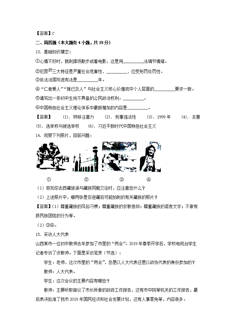 【文档名称】 2019年山西长治中考道德与法治真题及答案(Word版).doc