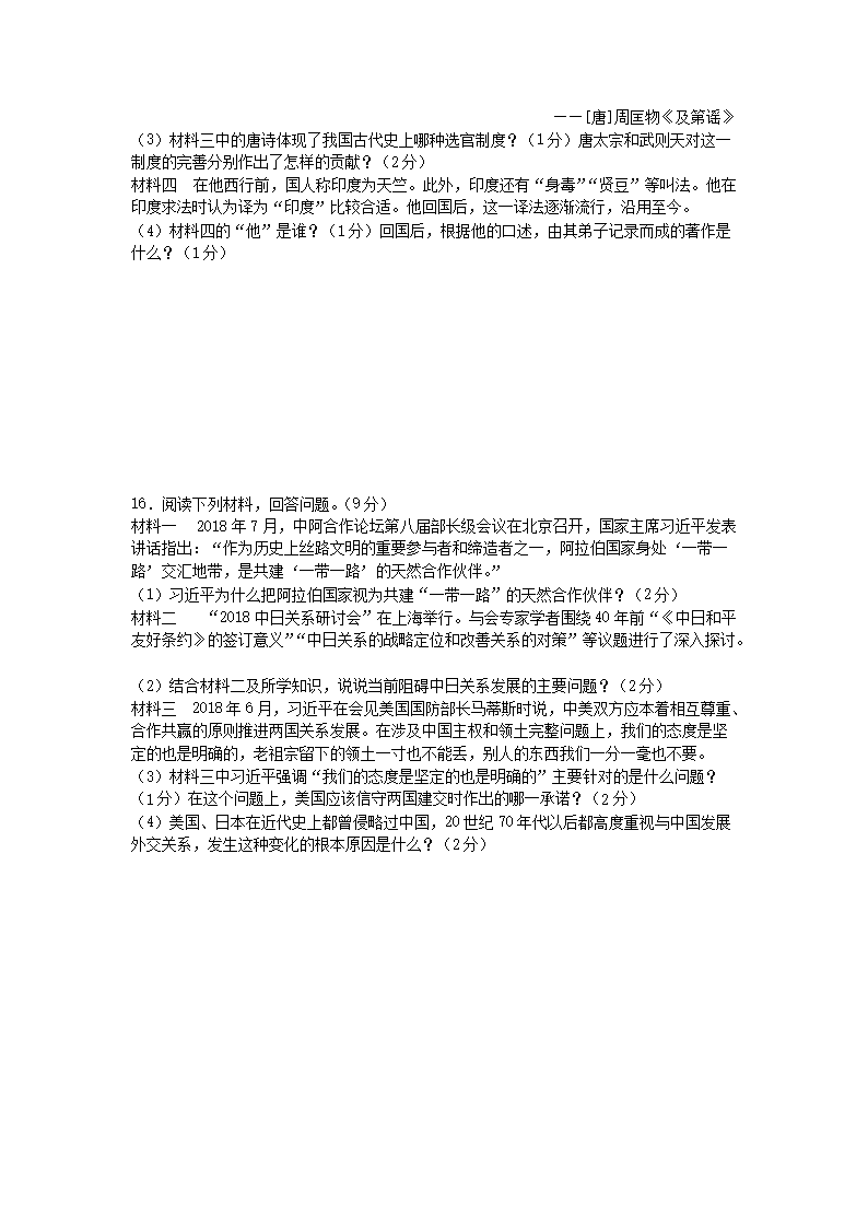 【文档名称】 2019年青海省黄南中考历史真题及答案(Word版).doc