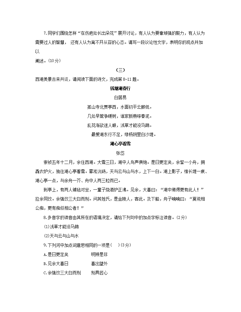 【文档名称】 2019年山西长治中考语文真题及答案(Word版).doc
