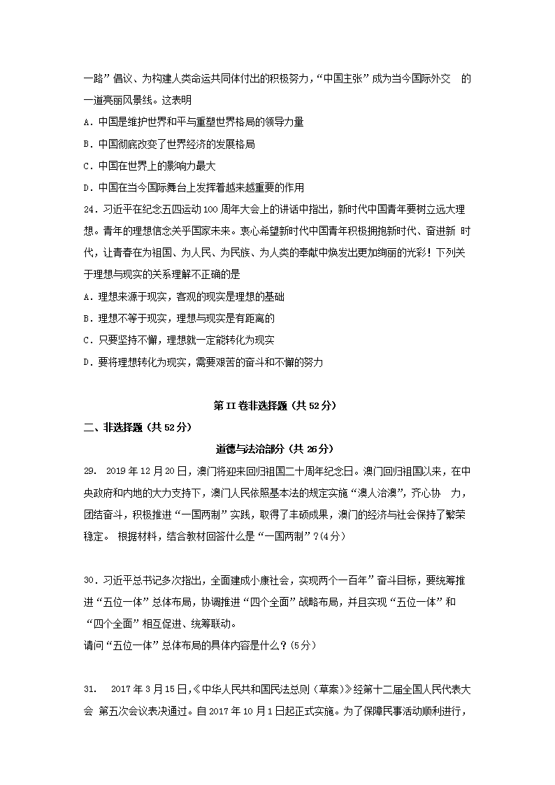 【文档名称】 2019四川省泸州市中考政治真题及答案(Word版).doc