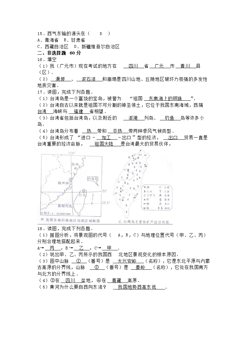 【文档名称】 2016四川省广元市中考地理真题及答案(Word版).doc