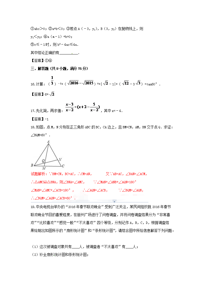 【文档名称】 2016四川省广元市中考数学真题及答案(Word版).doc