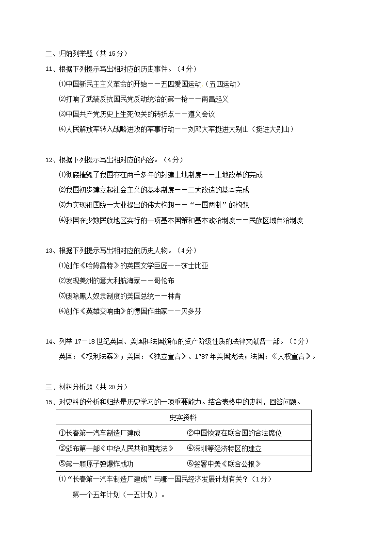 【文档名称】 2017年吉林白山中考历史真题及答案(Word版).doc