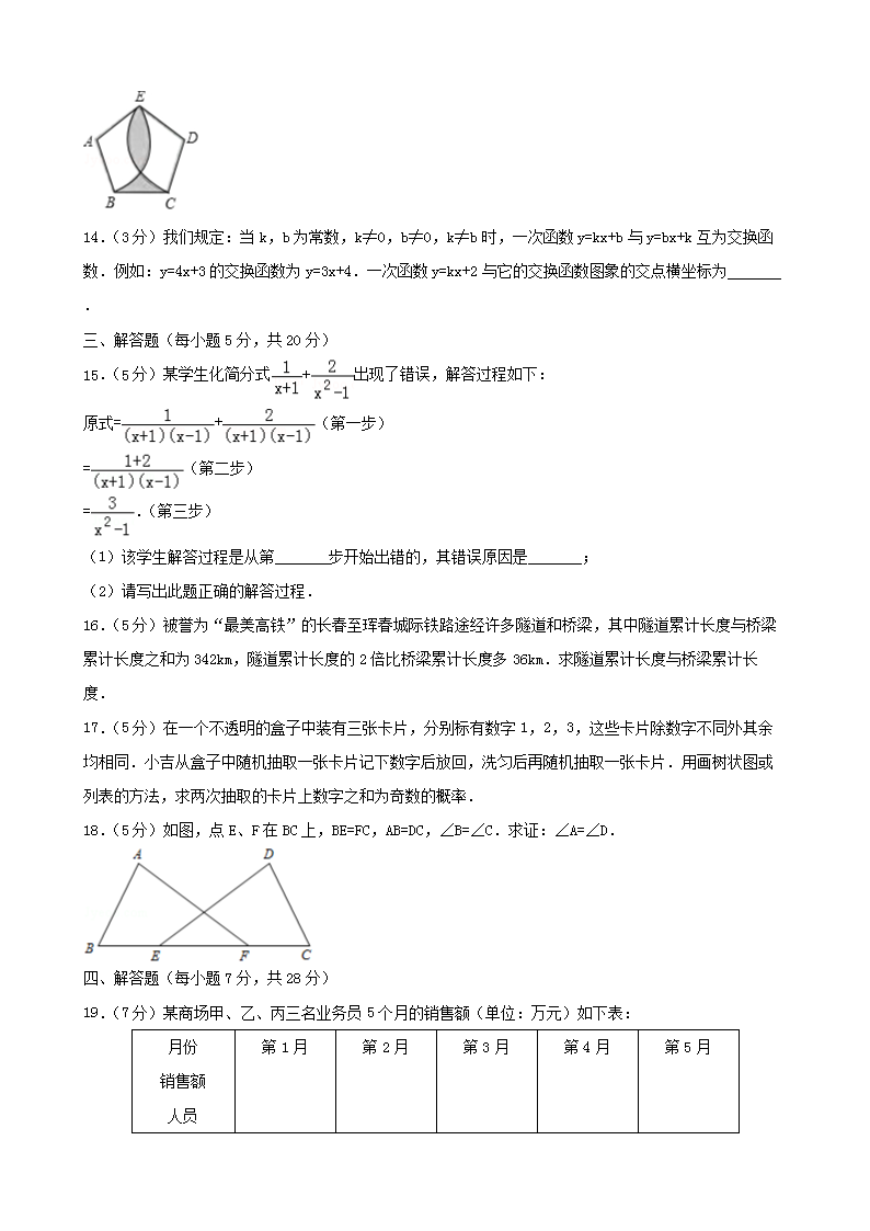 【文档预览】 无忧考网整理发布2017年吉林白山中考数学真题及答案(Word版),前五页预览如下:
