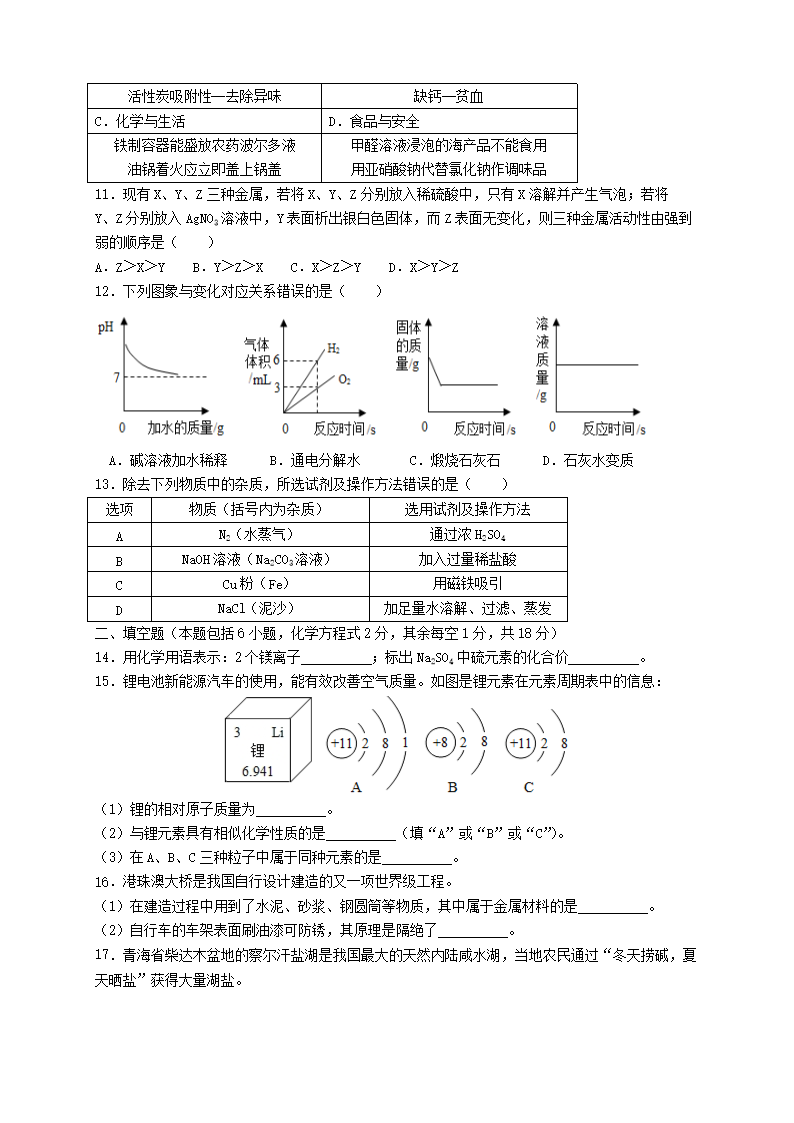 【文档名称】 2019年青海省玉树中考化学真题及答案(Word版).doc