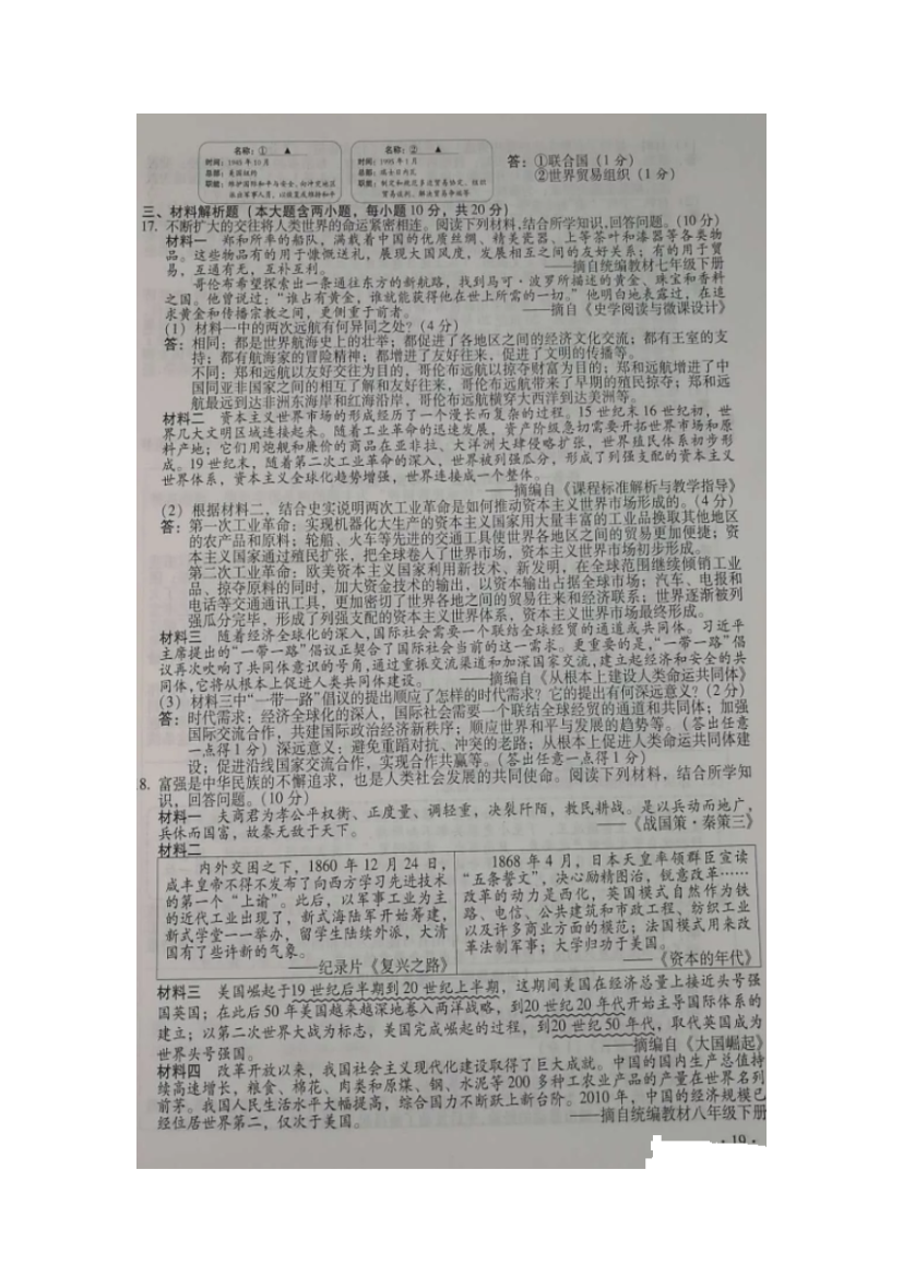 【文档名称】 2018年山西忻州中考文综真题及答案(图片版).doc