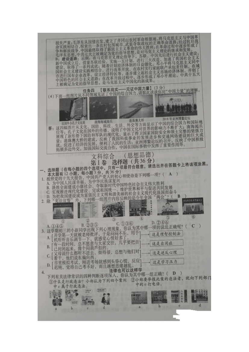 【文档预览】 无忧考网整理发布2018年山西忻州中考文综真题及答案(图片版),前五页预览如下: