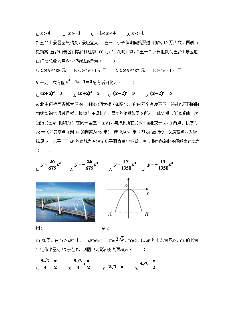 【文档名称】 2019年山西忻州中考数学真题及答案(Word版).doc