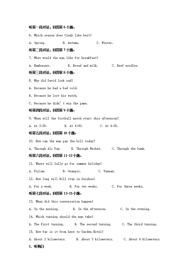 【文档名称】 2020年广东省珠海市中考英语真题及答案(Word版).doc