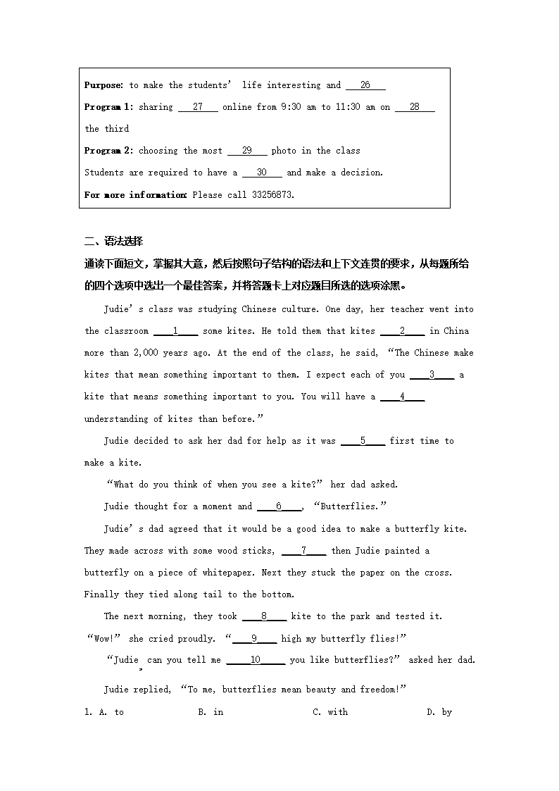 【文档预览】 无忧考网整理发布2020年广东省珠海市中考英语真题及答案(Word版),前五页预览如下: