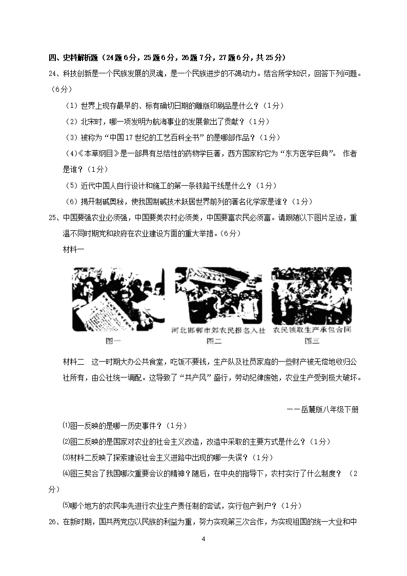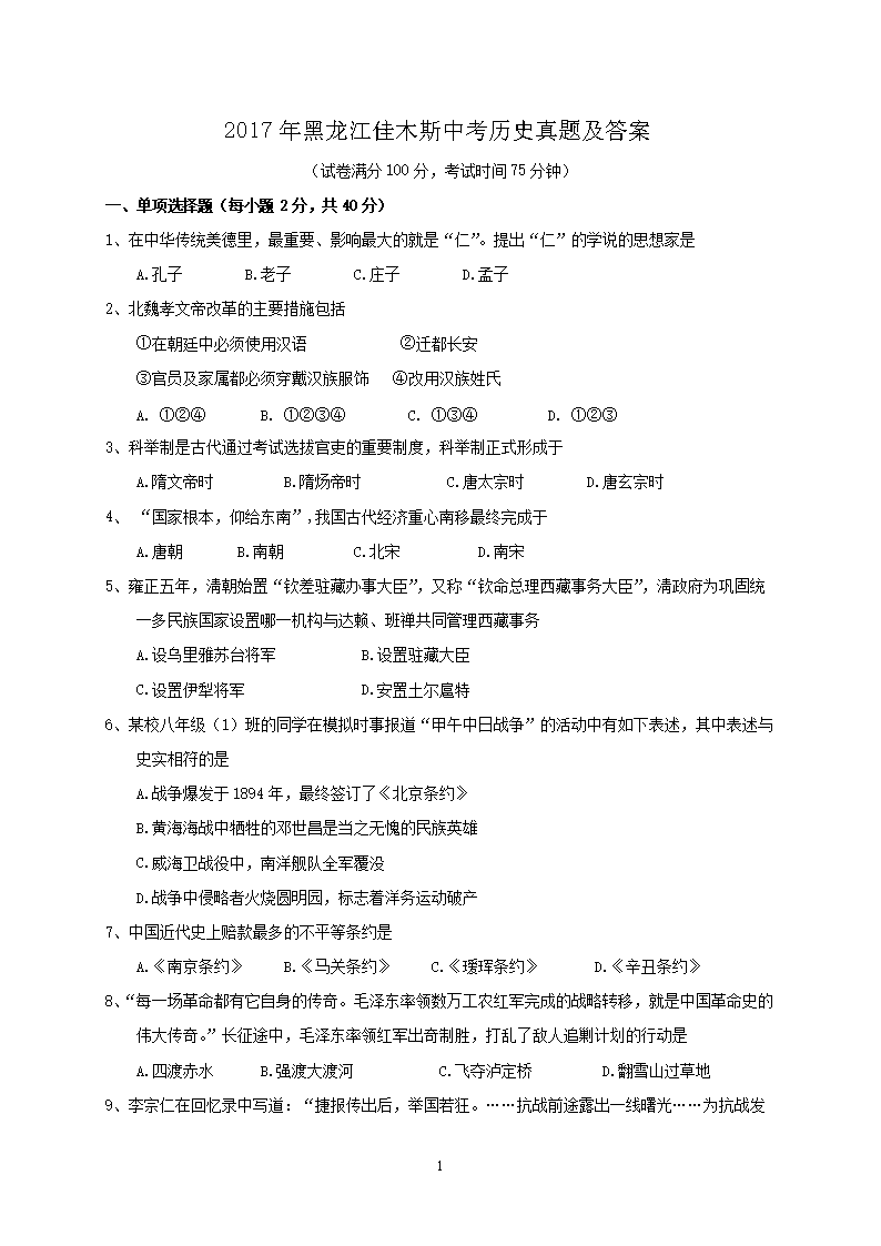 【文档预览】 无忧考网整理发布2017年黑龙江佳木斯中考历史真题及答案(Word版),前五页预览如下: