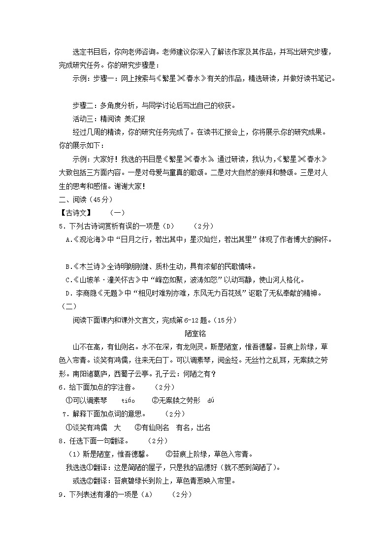 【文档预览】 无忧考网整理发布2015年山西朔州中考语文真题及答案(Word版),前五页预览如下: