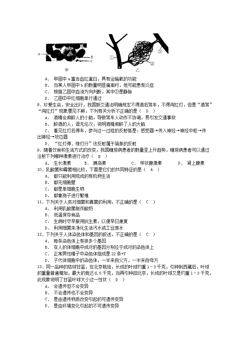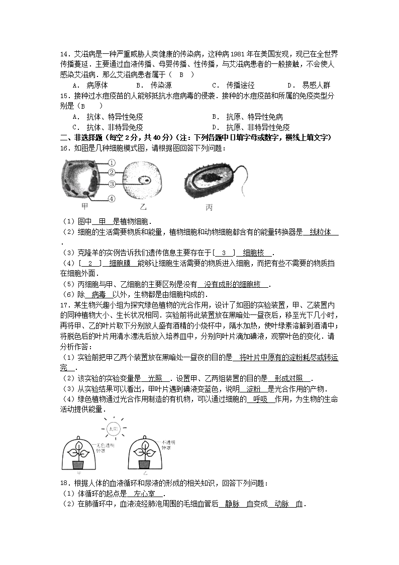 【文档名称】 2015四川省南充市中考生物真题及答案(Word版).doc