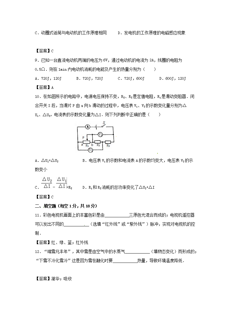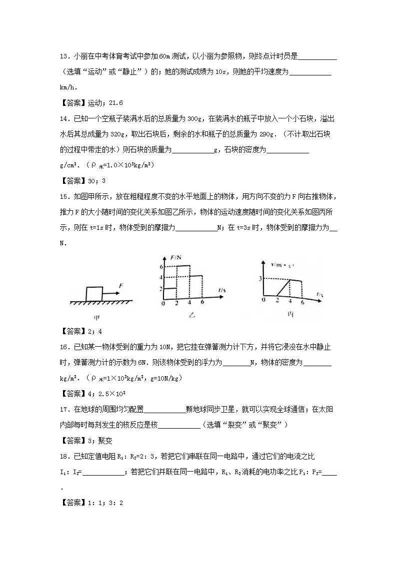 【文档名称】 2016四川省南充市中考物理真题及答案(Word版).doc