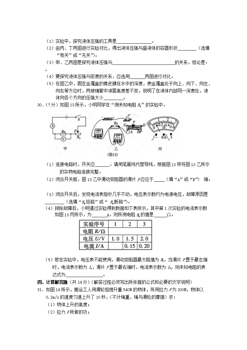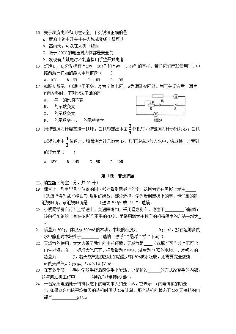 【文档预览】 无忧考网整理发布2015四川省巴中市中考物理真题及答案(Word版),前五页预览如下: