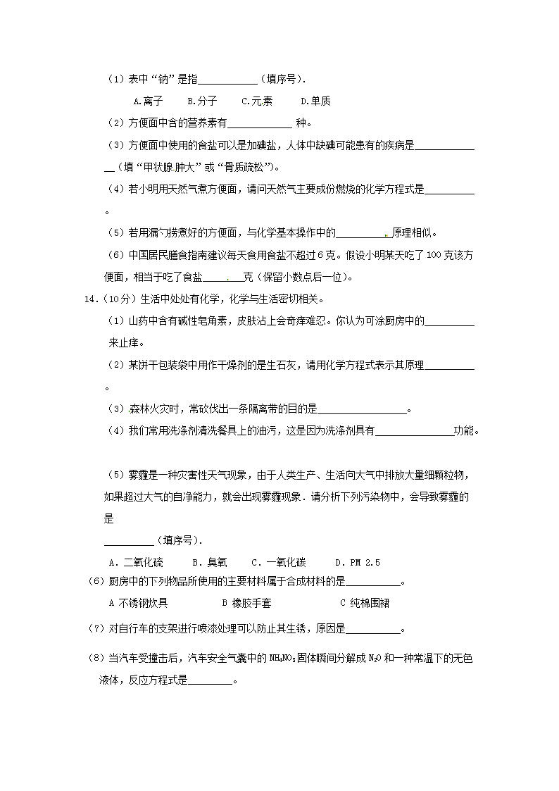 【文档名称】 2015四川省雅安市中考化学真题及答案(Word版).doc