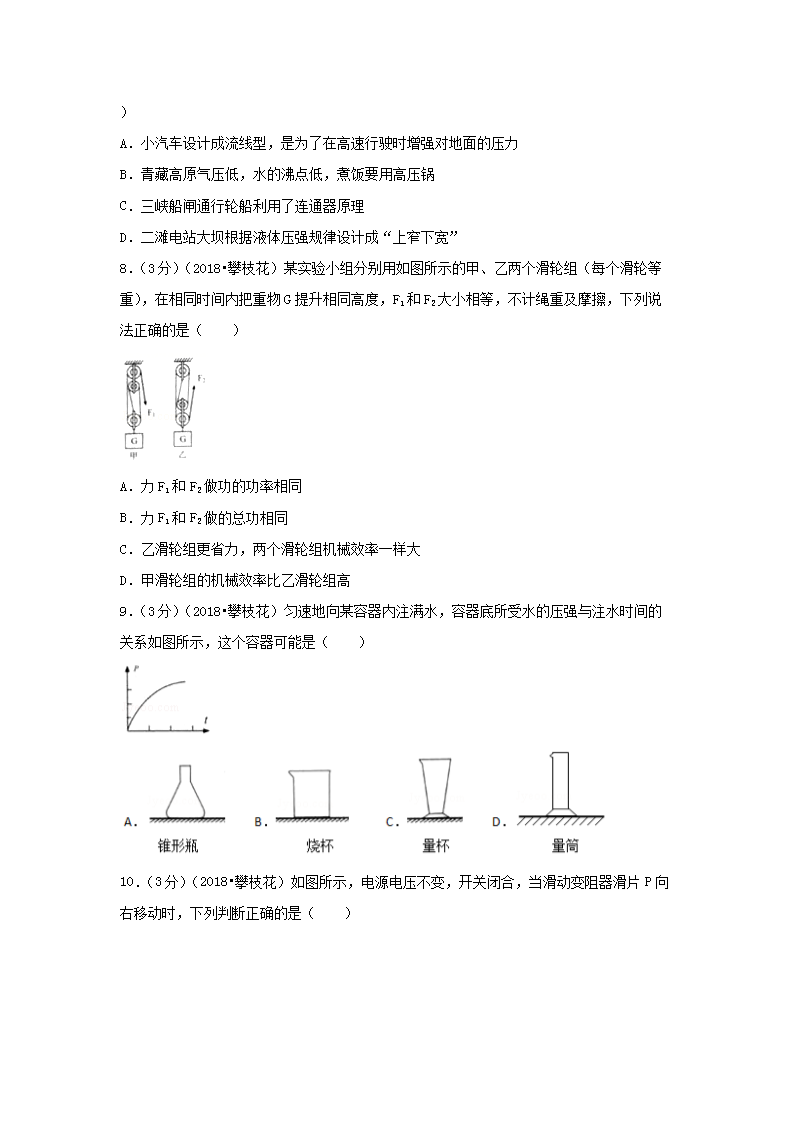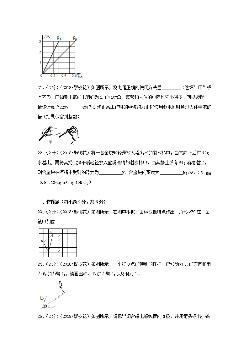 【文档名称】 2018四川省攀枝花市中考物理真题及答案(Word版).doc