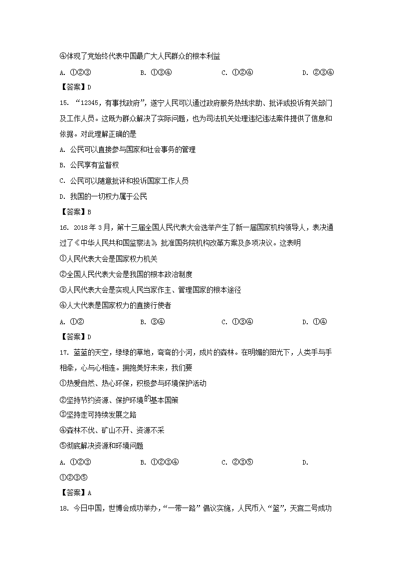 【文档名称】 2018四川省遂宁市中考政治真题及答案(Word版).doc