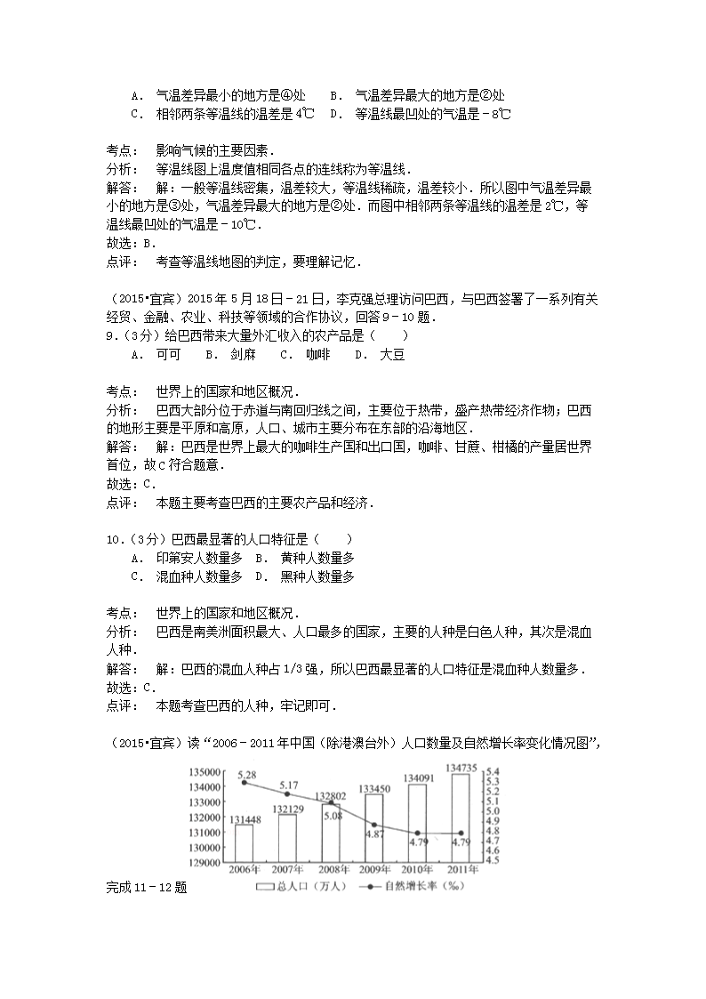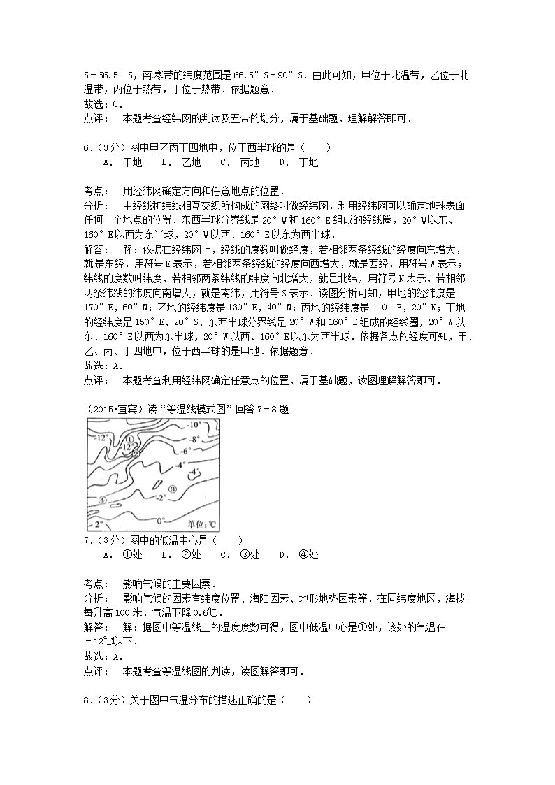 【文档名称】 2015四川省宜宾市中考地理真题及答案(Word版).doc