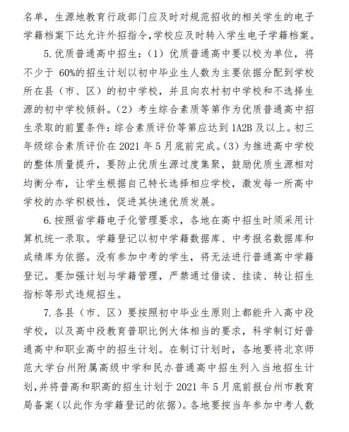 台州市教育局:2021年浙江台州初中毕业生学业考试与高中招生工作实施意见通知公布